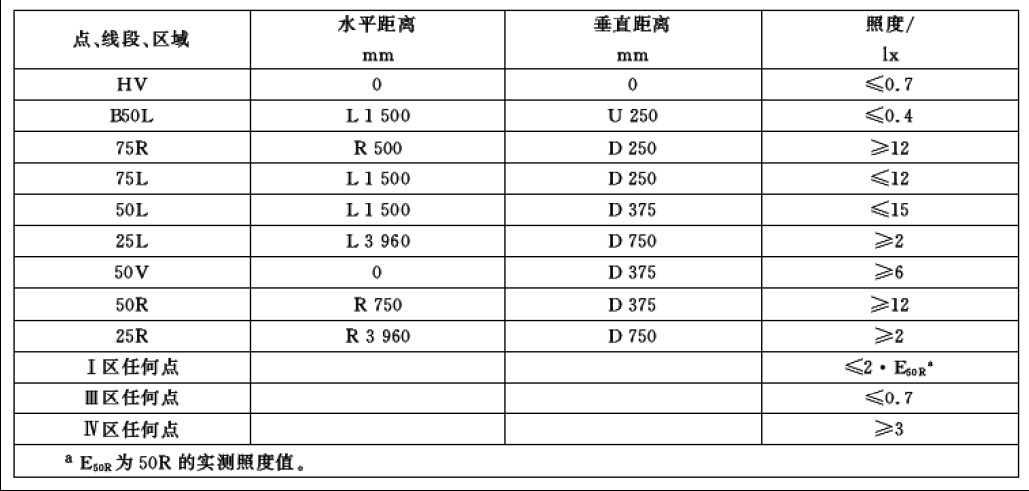 在Ⅲ區(qū)要求盡可能暗些,該區(qū)任何點(diǎn)照度不大于0.7lx;尤其是B50L處,照度不能超過(guò)0.7 lx,以免造成對(duì)方駕駛員炫目。