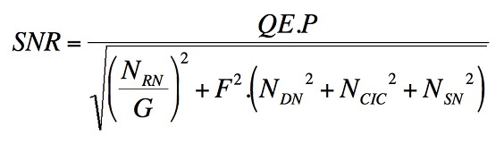 評(píng)價(jià)一臺(tái)CCD或EMCCD相機(jī)級(jí)別高低或質(zhì)量?jī)?yōu)劣的一個(gè)重要指標(biāo)是信噪比(SNR)??茖W(xué)客觀的信噪比定義為: