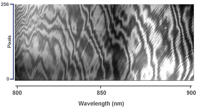 但與背感光芯片提供較高量子效率伴生的一個(gè)不利效應(yīng),就是其在特定波長(zhǎng)范圍內(nèi)產(chǎn)生的光學(xué)標(biāo)準(zhǔn)具效應(yīng)。背感光芯片前后兩個(gè)彼此平行的表面,構(gòu)成了類F-B干涉儀的兩個(gè)鏡片,在滿足兩個(gè)表面間距與入射相干光波長(zhǎng)匹配條件的情況下,對(duì)特定波長(zhǎng)范圍內(nèi)的光,形成了干涉條紋。這種干涉條紋,對(duì)本真的待測(cè)信號(hào),可以施加高達(dá)40%的有害周期調(diào)制因子,嚴(yán)重削弱了數(shù)據(jù)的可信性,給科研工作者的工作,帶來了極大的負(fù)面影響。