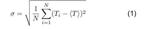 如果測(cè)量 N 個(gè)周期,抖動(dòng)表示各個(gè)測(cè)量值 Ti 相對(duì)于其平均值 〈T 〉的分布,以峰峰值或 RMS(均方根)表示: