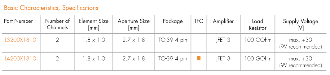 提供雙通道,三通道和四通道等多通道熱釋電探測器,采用LiTaO3材料,可根據(jù)客戶需求選擇溫度補(bǔ)償功能,并直接集成到現(xiàn)有的設(shè)計和電子產(chǎn)品中。