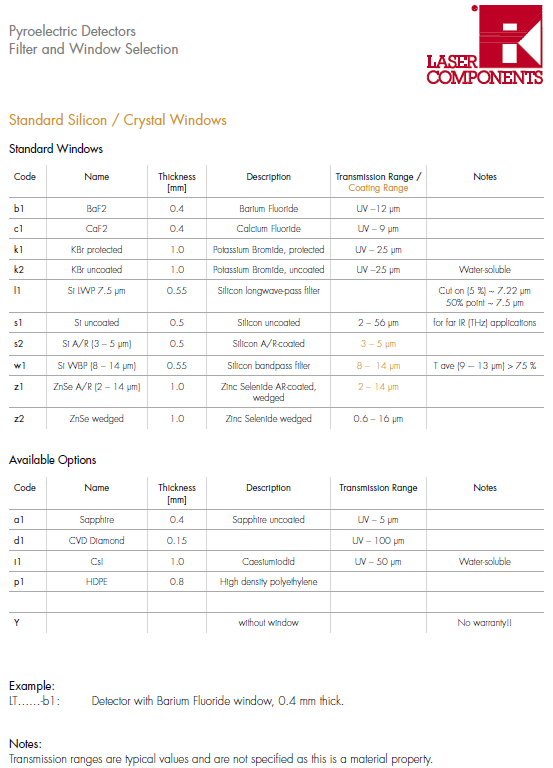 我們可以提供電流輸出模式和電壓輸出模式兩種熱釋電探測器,同時有多種波長的濾光片和窗口片,讓你簡單便捷的探測到多種氣體濃度,滿足您多方面的需求。