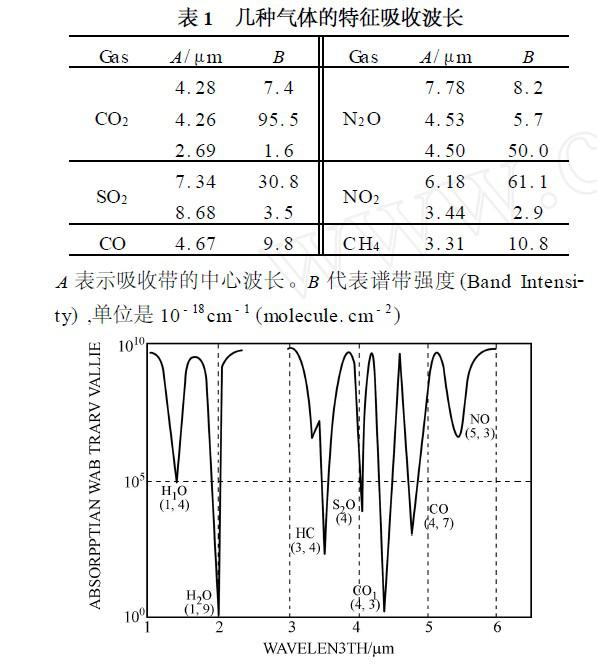 圖1 常見(jiàn)氣體的特征吸收波長(zhǎng)