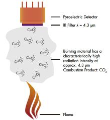 基于紅外熱釋電原理的火焰探測技術,利用紅外熱釋電傳感器作為敏感元,接受火焰燃燒輻射的紅外線熱信號,并轉換為電壓/電流信號。目前國內外通用的方式是選擇多通道探測器,不同通道安置不同波長的濾光片,在測試火焰的同時,也實時監(jiān)測背景環(huán)境存在的干擾輻射,極大地減少誤報事件的發(fā)生。