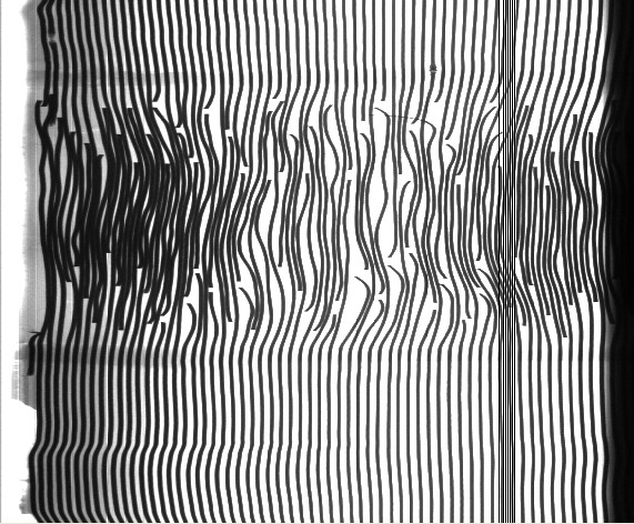 下圖是采用我司的X射線線陣探測系統(tǒng)采集到皮帶圖像: