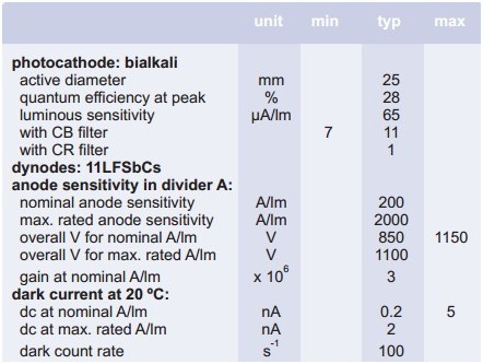 目前化學(xué)發(fā)光儀中使用普遍的光電探測器為光電倍增管(PMT)。英國ETL公司生產(chǎn)的9107B是化學(xué)發(fā)光應(yīng)用中具性價(jià)比的PMT。9107B具有11級(jí)打拿極,具有較高的增益和陽極靈敏度,加之其極低的暗噪聲,在各類光子計(jì)數(shù)應(yīng)用中9107B都具有極大的優(yōu)勢。