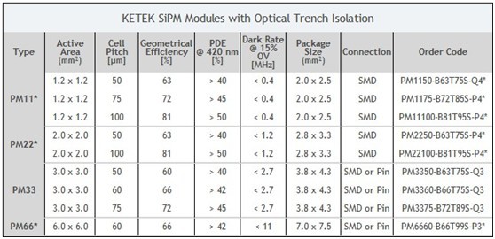 1、德國Ketek公司是低噪聲SiPM的供應(yīng)商,其產(chǎn)品相比其他同類產(chǎn)品具有極低的暗噪聲和工作電壓以及較高的光子探測效率。