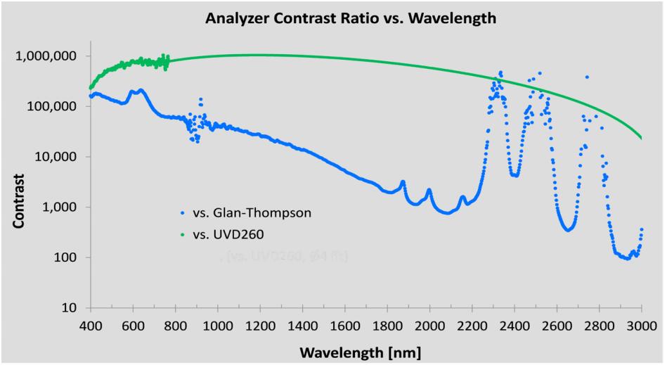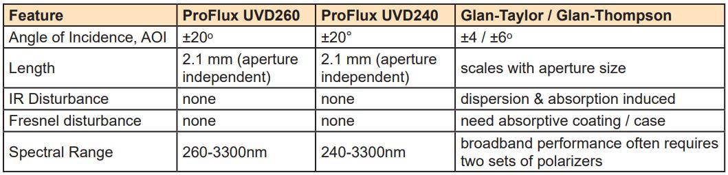 Moxtek UVD260和UVD240偏振片可用于光譜儀,與Glan-Taylor棱鏡相比,其小尺寸、寬接受角、均勻性和寬波長(zhǎng)帶寬特點(diǎn)具備明顯的優(yōu)勢(shì),另外相比傳統(tǒng)的Glan-Taylor棱鏡,UVD系列偏振片還具有更高的對(duì)比度和透過率,同時(shí)支持更大的AOI,需要更少的空間,沒有光學(xué)像差,厚度僅為2mm左右。
