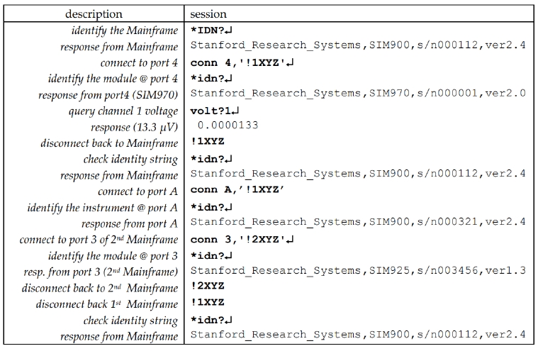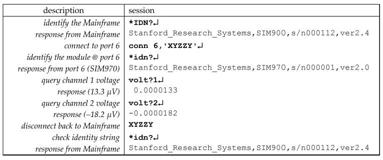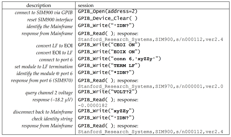GPIB (IEEE-488)示例是作為偽代碼編寫的,因?yàn)闆]有類似的GPIB控制臺(tái)程序。 發(fā)送到SIM系統(tǒng)的實(shí)際數(shù)據(jù)再次設(shè)置為 “bold teletype”, 而響應(yīng)設(shè)置為“plain teletype”.