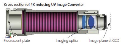 針對深紫外激光器,例如266nm、213nm、193nm等激光器,建議使用紫外轉(zhuǎn)換器,將紫外光轉(zhuǎn)換成可見光探測。