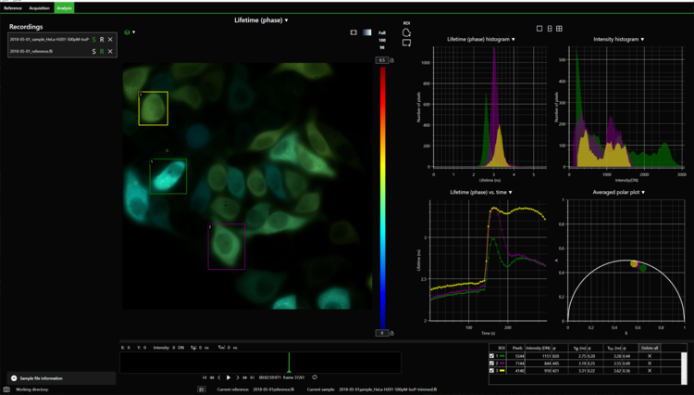 從記錄圖像到壽命計(jì)算和數(shù)據(jù)分析,軟件自動(dòng)記錄分析數(shù)據(jù),并直觀的顯示計(jì)算出的熒光壽命。