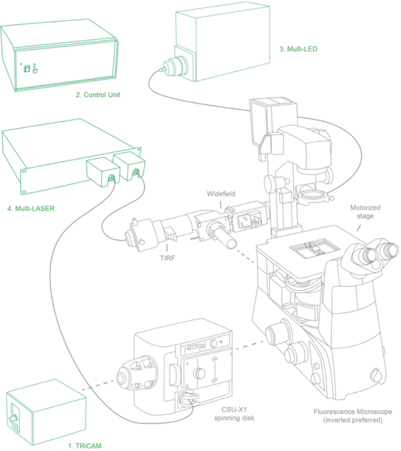 兼容:LIFA兼容每一個(gè)帶有相機(jī)輸出的熒光顯微鏡,包括徠卡、尼康、奧林巴斯、TILL和蔡司的熒光顯微鏡,寬場(chǎng)熒光顯微配置,轉(zhuǎn)盤(pán)共焦熒光顯微配置,全內(nèi)反射熒光顯微TIRF配置;