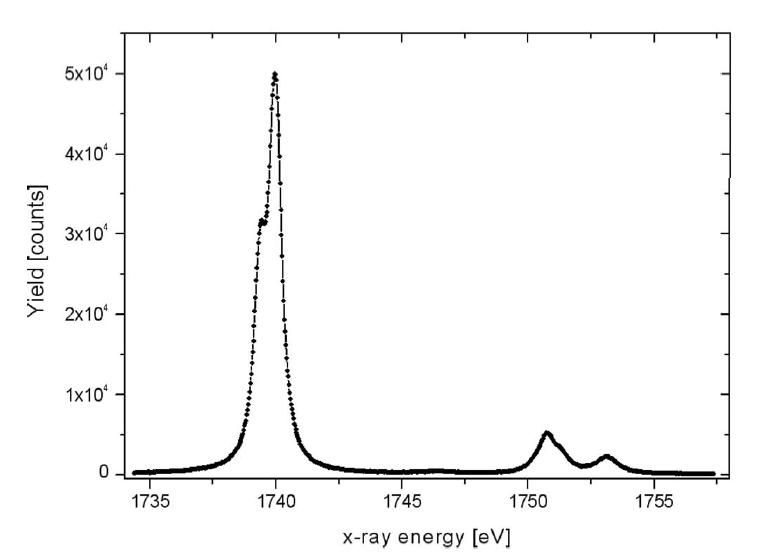 案例一:用Andor真空相機(jī)搭建的彎晶譜儀獲得的Si Kα譜線