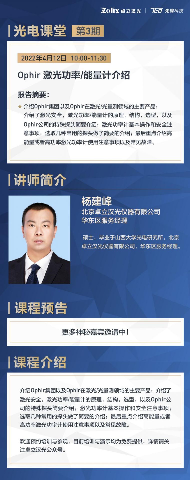 為多方位展現(xiàn)光電儀器研制領(lǐng)域的最新成果,使客戶進(jìn)一步了解和熟悉光電產(chǎn)品及應(yīng)用,卓立漢光&先鋒科技秉持“優(yōu)質(zhì)服務(wù)”的理念,特別策劃制作《光電課堂》網(wǎng)絡(luò)專題直播課。歡迎預(yù)約培訓(xùn)與參觀,目前培訓(xùn)與演示均為免費(fèi)提供,詳情請(qǐng)關(guān)注先鋒科技公眾號(hào)。
