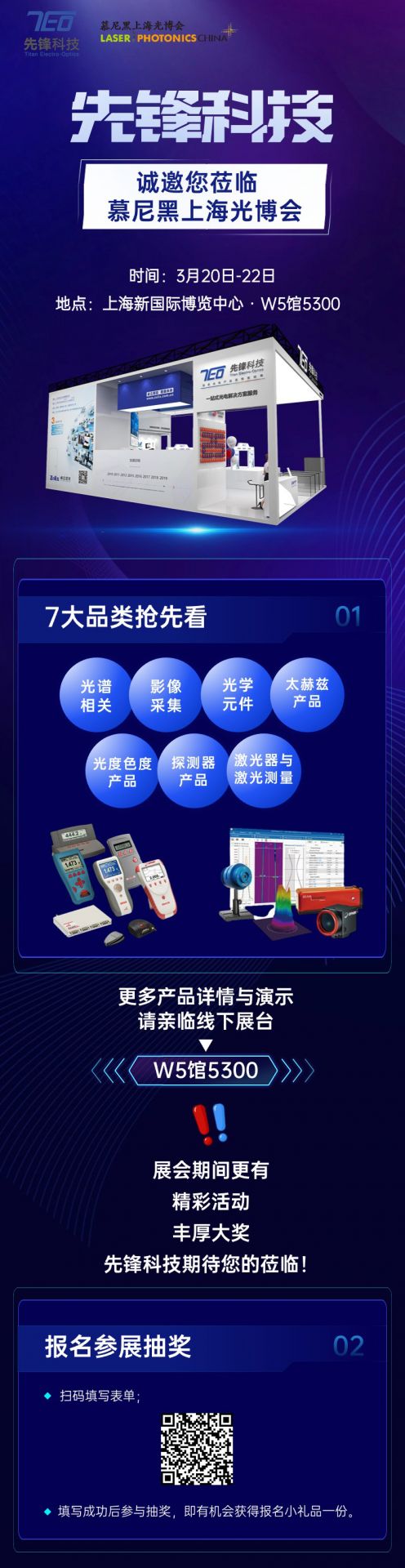 展品涵蓋光譜產(chǎn)品、紅外相機(jī)、像增強(qiáng)器、手持式光譜亮度計(jì)、激光光束測(cè)量?jī)x、波長(zhǎng)計(jì)、激光功率能量計(jì)表頭、探頭、X射線探測(cè)器、黑硅探測(cè)器、氣體傳感器等熱門產(chǎn)品,屆時(shí)歡迎新老朋友蒞臨先鋒科技展位【W(wǎng)5館5300】參觀交流。