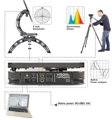 LabSpion是一個完整的光測量解決方案,覆蓋小型燈具,LED芯片,大型燈具及路燈等幾乎所有光源。 兩軸分布式光度計使系統(tǒng)能夠測量任何燈的完整3D光強分布區(qū)域,并能提供全面的LDT和IES模擬文件。