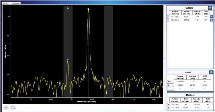 監(jiān)控信道光譜特性:波長,帶寬,最大邊模抑制比等