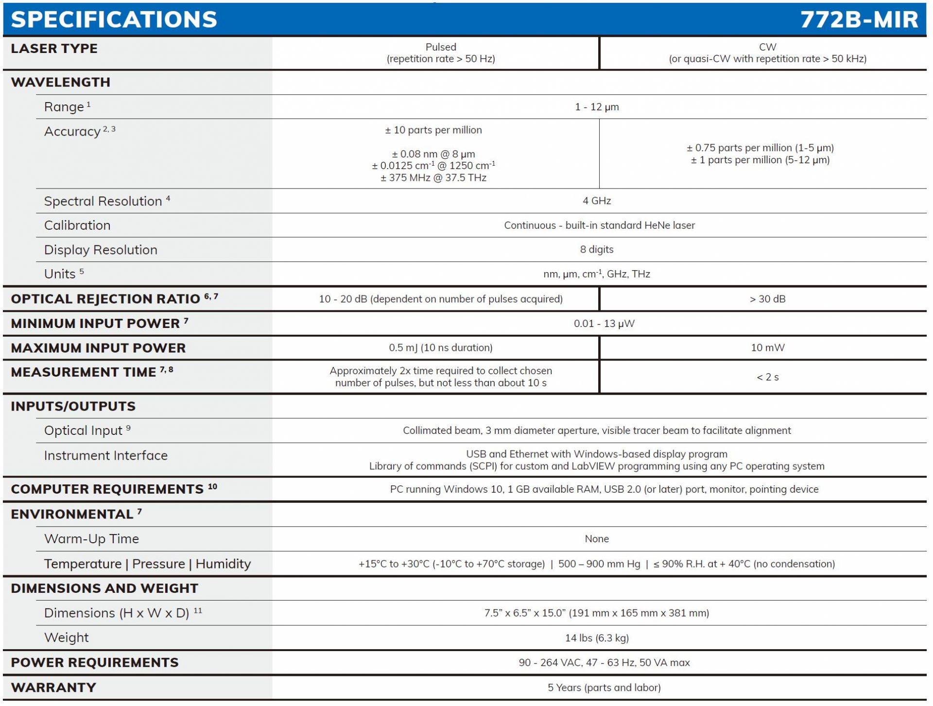 772B-MIR 激光光譜分析儀將成熟的邁克爾遜干涉儀技術(shù)與快速傅里葉變換分析相結(jié)合,可以測量 1 至 12μm 范圍內(nèi)的連續(xù)激光和脈沖激光的光譜特性。772B-MIR 系統(tǒng)的獨特之處在于它可以測量重復(fù)頻率低至50Hz 的脈沖激光。