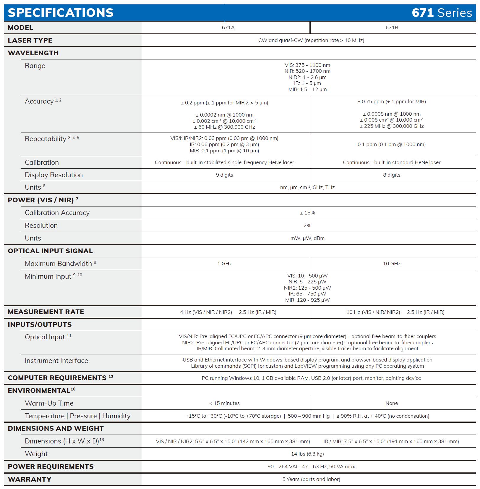 - 工作范圍 375nm-5µm;671B 可達 12µm