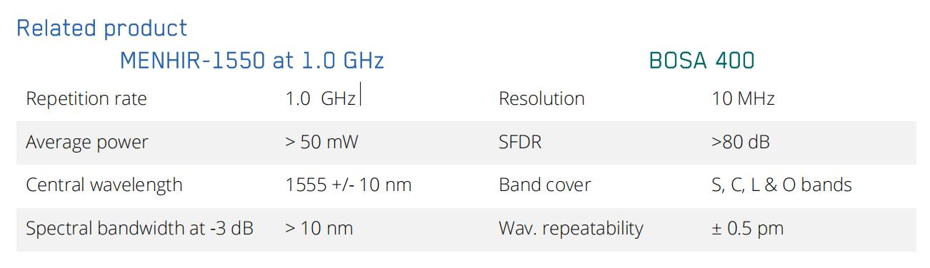 針對高分辨率頻率梳檢測,我公司可以提供成套設(shè)備:包括高穩(wěn)定性MENHIR-1550飛秒激光器和高分辨率Aragon Photonics BOSA光譜分析儀。