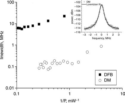 圖10. DM離散半導(dǎo)體激光器與DFB分布反饋半導(dǎo)體激光器的線寬更窄