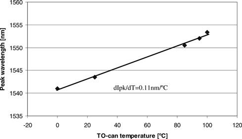 圖8.DMLD離散模半導(dǎo)體激光器在0-100度寬范圍調(diào)溫調(diào)諧波長1542-1553nm