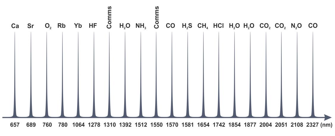 圖11. DM離散半導(dǎo)體激光器典型波長與對應(yīng)氣體吸收峰位