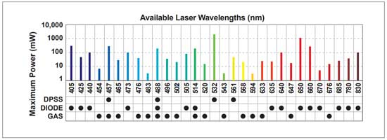 可提供多種波長(zhǎng),不同功率的Gas Laser, DPSS Laser, Diode Laser。