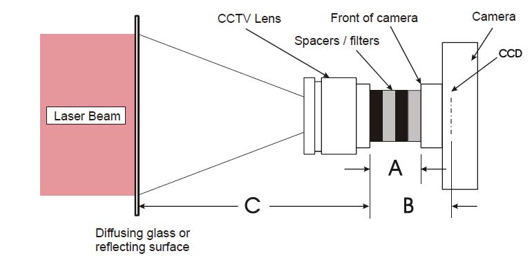 超大的光斑既不能適用于CCD 相機(jī)直接探測(cè),而大口徑的縮束系統(tǒng)(望遠(yuǎn)鏡)成本高、體積大、像差難以保證。將超大光斑入射到散射體上,再經(jīng)過(guò)CCTV lens 成像于CCD芯片上,是一種便利的方法。