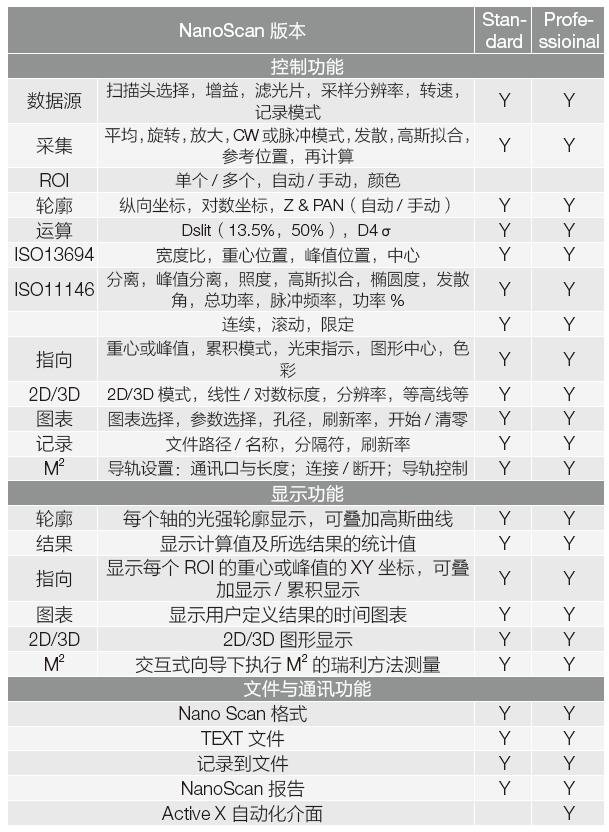NanoScan 提供Standard 與Professional 兩種功能版本: