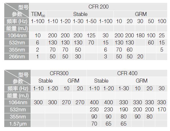 CFR 系列燈泵納秒脈沖激光器技術(shù)參數(shù)