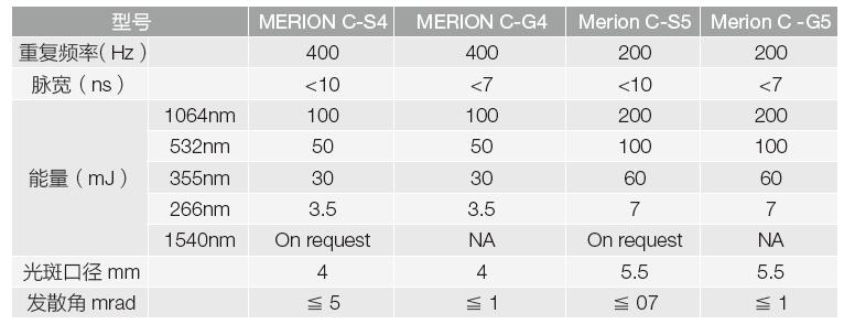 Merion C 為體積較為緊湊的型號,提供Stable、GRM 兩種腔型;Merion MW 為單脈沖能量更高的型號,提供GRM 腔型。