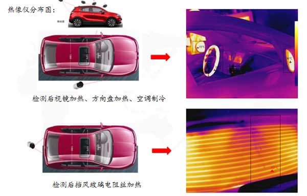 轎車整車熱像檢測(cè)方案用于轎車整車下線時(shí)的檢測(cè),能夠快速準(zhǔn)確的檢測(cè)各加熱、制冷部件是否工作正常,提高整車的質(zhì)量水平。