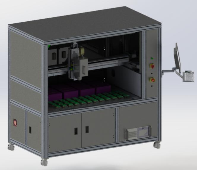 - 采用平鋪式布局,搭載亮度計在X\Y\Z三個方向運動,產(chǎn)品點亮后,亮度計依次采集亮度變化,獲取lifetime數(shù)據(jù)。