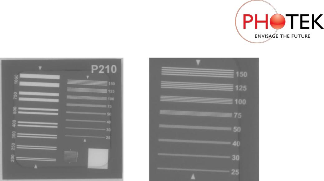 為了標(biāo)定中子相機(jī)系統(tǒng)的空間分辨率,我們從the Paul Scherrer Institute (PSI)實(shí)驗(yàn)中心取得一組分辨率標(biāo)定圖。PSI提供了三組不斷減小的線對(duì)組圖(200-1000um;25-150um;5-25um)以及用于模式傳輸函數(shù)MTF分析的3°的傾角盒。通過(guò)以上工具對(duì)75mm以及30mm視場(chǎng)進(jìn)行了極限分辨率分析。