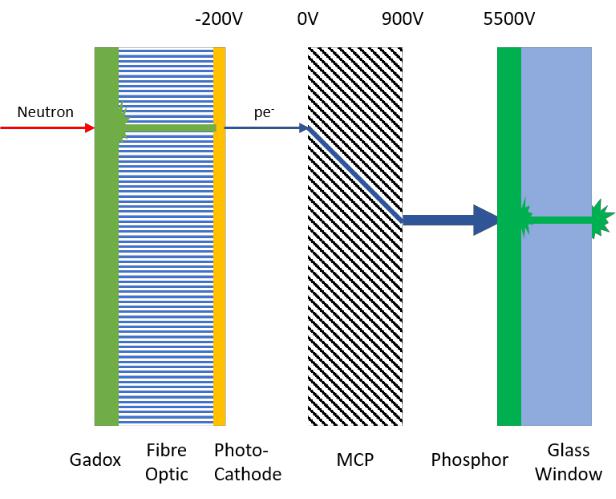 同時(shí)N-Cam是一種新型的像增強(qiáng)型中子成像系統(tǒng),該系統(tǒng)將閃爍體Gadox層直接沉積在像增強(qiáng)輸入模塊。此像增強(qiáng)模塊的應(yīng)用提供了更高的靈敏度以及出色的空間分辨率,積分時(shí)間更短,同時(shí)提高了信噪比。N-Cam具有 低至50ns門控單元,提供精確的門控時(shí)間以于飛行時(shí)間能量質(zhì)譜分析。標(biāo)準(zhǔn)配置的N-Cam中子相機(jī)配備420萬(wàn)像素的制冷型sCMOS相機(jī)和一個(gè)直徑為75mm的像增強(qiáng)器視場(chǎng),可以提供在大于10 lp/mm分辨率基礎(chǔ)下進(jìn)行高速或特定能量的x射線成像。