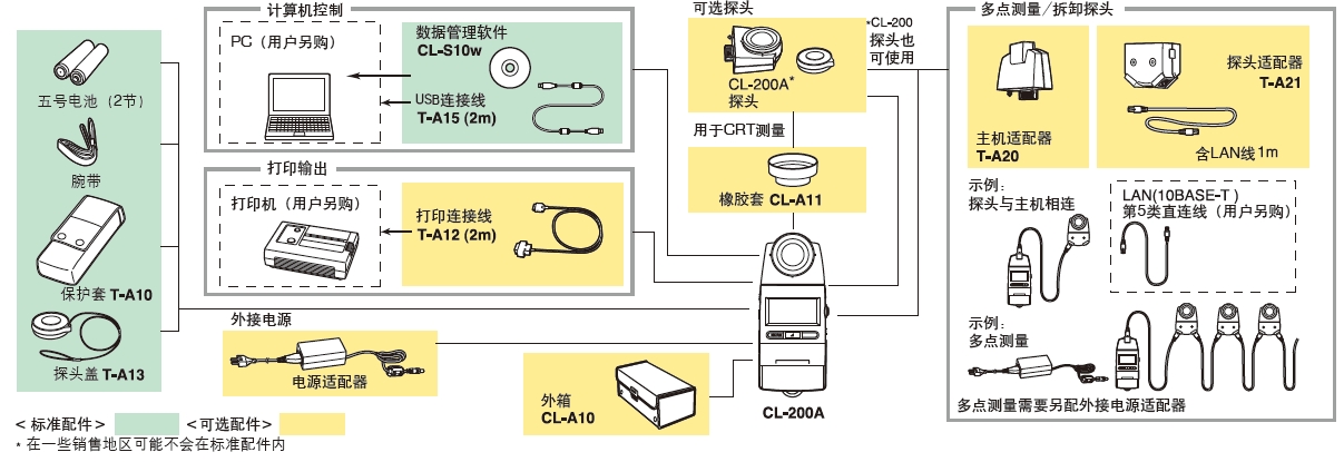 測量探頭,主機(jī)適配器T-A20,探頭適配器T-A21, 外接電源適配器AC-A308(1-10個探頭) 外接電源適配器AC-A311(1-30個探頭) 打印連接線T-A12,橡膠套CL-A11,外箱CL-A10 |