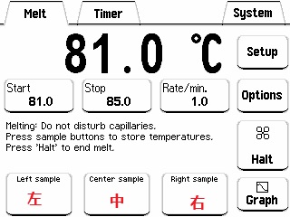 SRS OptiMelt熔點(diǎn)分析儀的用戶可以利用肉眼觀察圖像,并隨時(shí)點(diǎn)擊儀器前面板的左,中,右按鈕記錄對(duì)應(yīng)樣品的個(gè)性化記錄點(diǎn)。