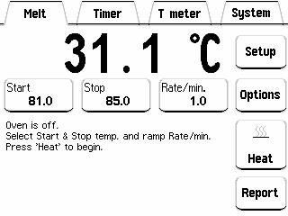 小型加熱爐的主要優(yōu)點(diǎn)是沒(méi)有過(guò)沖。這使您可以將起始溫度設(shè)置在低于化合物預(yù)期熔點(diǎn)的<5°C,其可以快速加熱和冷卻,并允許僅持續(xù)2至3分鐘的測(cè)定。