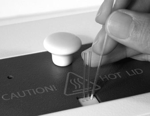 千萬(wàn)不要將毛細(xì)管強(qiáng)行放入加熱槽中!一旦毛細(xì)血管插入樣品孔中,它就會(huì)自行滑落到支架的底部。