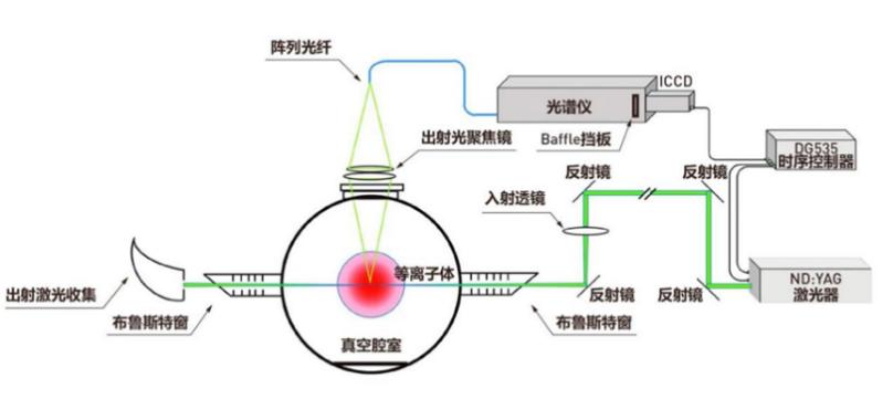等離子體中心到透鏡的距離L和光纖的芯徑,及像斑決定了收集透鏡的焦距。舉例如下:如果像斑要求是fP =2mm,光纖芯徑400mm, 則物像比是4,如果L=320mm, 則透鏡的焦距就是320/4=80mm。同時(shí)如果觀測(cè)的等離子體范圍是50mm,那光纖一字排開(kāi)的范圍就是50mm/4=12.5mm。這個(gè)寬度和連接譜儀一側(cè)的光纖束的尺寸很接近了,連接收集透鏡一側(cè)光纖也應(yīng)該是密集排布,這樣兩端容納的光纖數(shù)量就是匹配的。