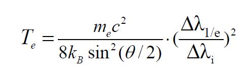 湯姆遜散射角度 Theta=90度;me是電子質(zhì)量,c是光速,kB是玻爾茲曼常數(shù),公式右邊分母下面: 是激光的波長(zhǎng) 532nm;分子是譜線展寬,不過(guò)是1/e展寬