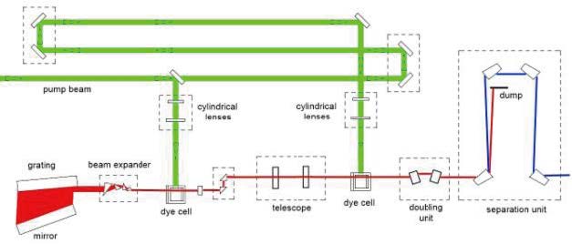 染料倍頻 + 1064nm 泵浦光 |
