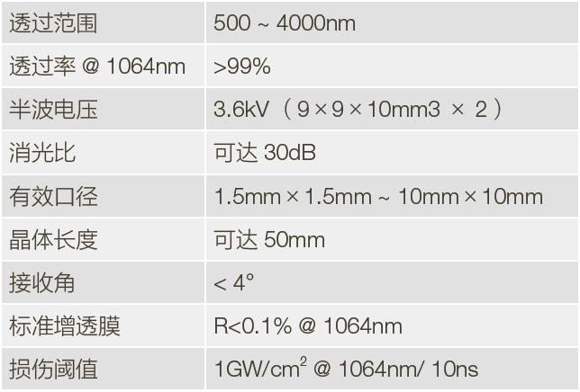 RTP晶體有高介電常數(shù)和電阻率,高激光損傷閾值,低插入損耗,無潮解,和無振鈴效應,很適用于做激光的電光調制,包括: