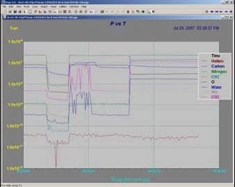 UGA系統(tǒng)自帶windows 軟件,實時采集數(shù)據(jù)和圖形化顯示,操作方便快捷。軟件功能中包含模擬的柱狀掃描模式、壓力和時間關(guān)系圖、檢漏測試、氣體分析和在線分析。標(biāo)準(zhǔn)的GPIB 和RS232 接口方便與計算機(jī)連接控制。