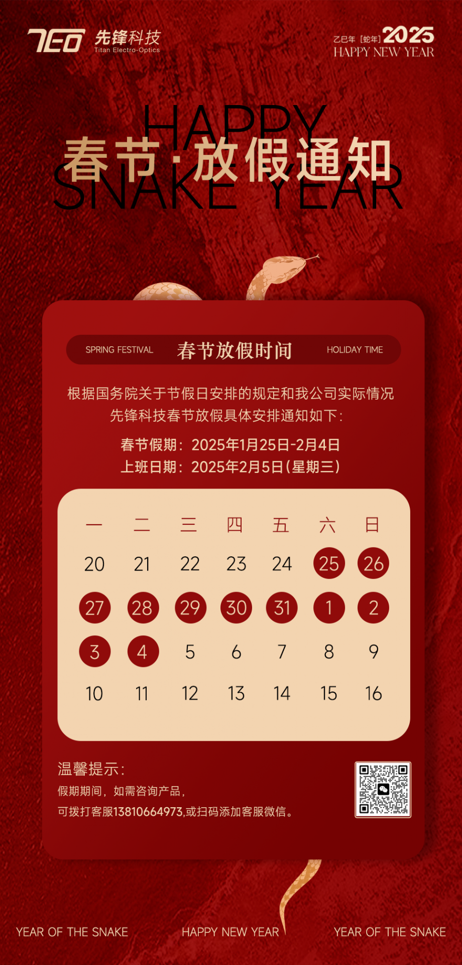 先鋒科技2025年春節(jié)放假通知