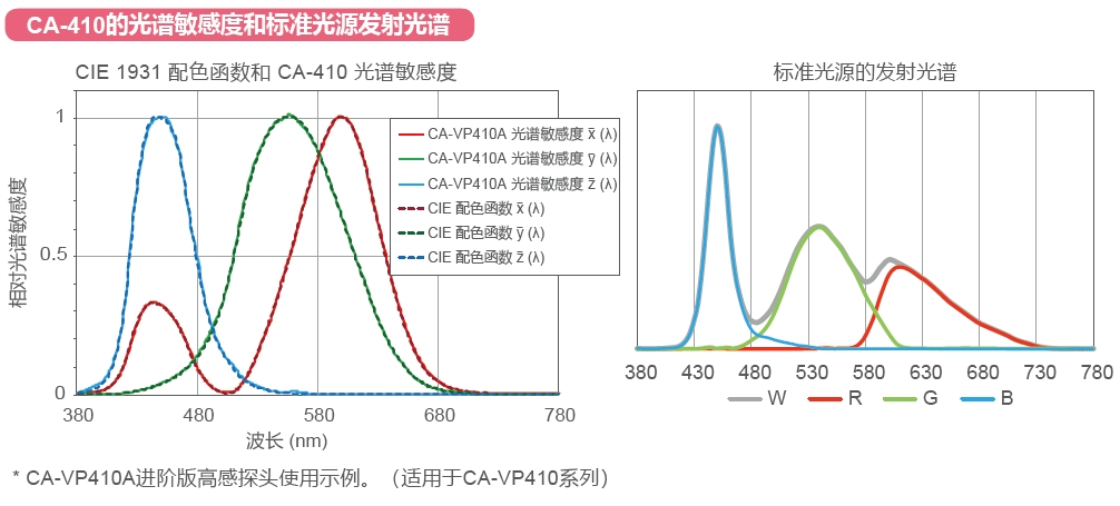 *還有匹配*新配色函數(shù)曲線CIE 170-2:2015 2度標(biāo)準(zhǔn)觀察者的CA-P427C/P410C探頭可選。