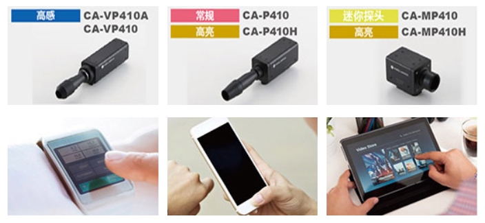 此類探頭的測量口徑適合測量智能腕表、小型智能手機(jī)、車載顯示屏等。有5 種型號:CA-VP410 高感探頭適用于低亮度的高速測量;CA-P410 常規(guī)探頭適用于廣泛的精度保證亮度范圍;CA-P410H 高亮探頭可以測量高達(dá)30,000 cd/m2的亮度;CA-MP410/MP410H 迷你探頭旨在實現(xiàn)小尺寸和高性價比。