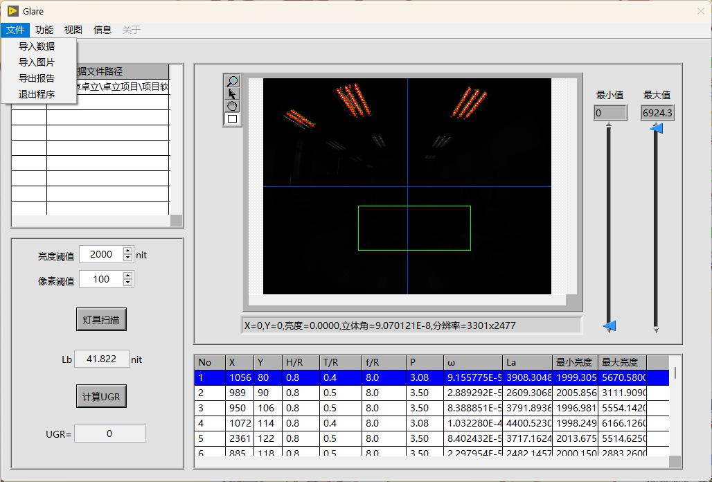 卓立漢光從2015年研發(fā)出*一套眩光測試系統(tǒng),并在近幾年的眩光測試實踐中,不斷更新測量方法和測試思路,推出了同時包含UGR,GR,TI三類眩光評價指標(biāo)的眩光測試系統(tǒng),以及道路照明測試系統(tǒng)。此系統(tǒng)可以通過Glare軟件控制相機(jī)實現(xiàn)在線式的測量,測量和計算眩光參數(shù)可以一次性完成。