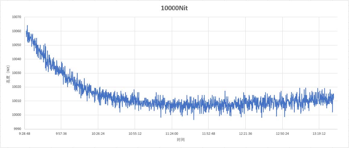 設(shè)置亮度10000Nit輸出4小時內(nèi)光源穩(wěn)定性:99.32%